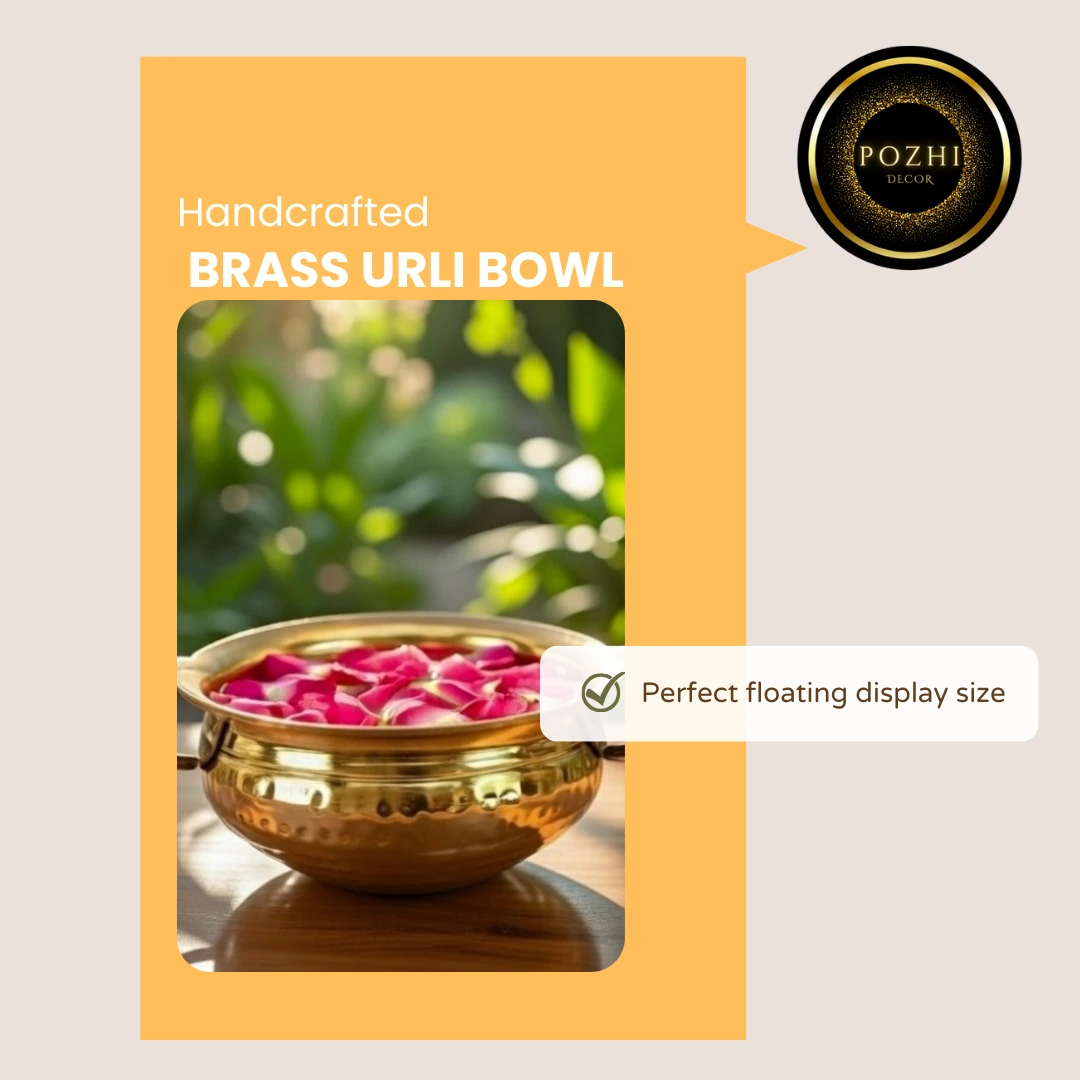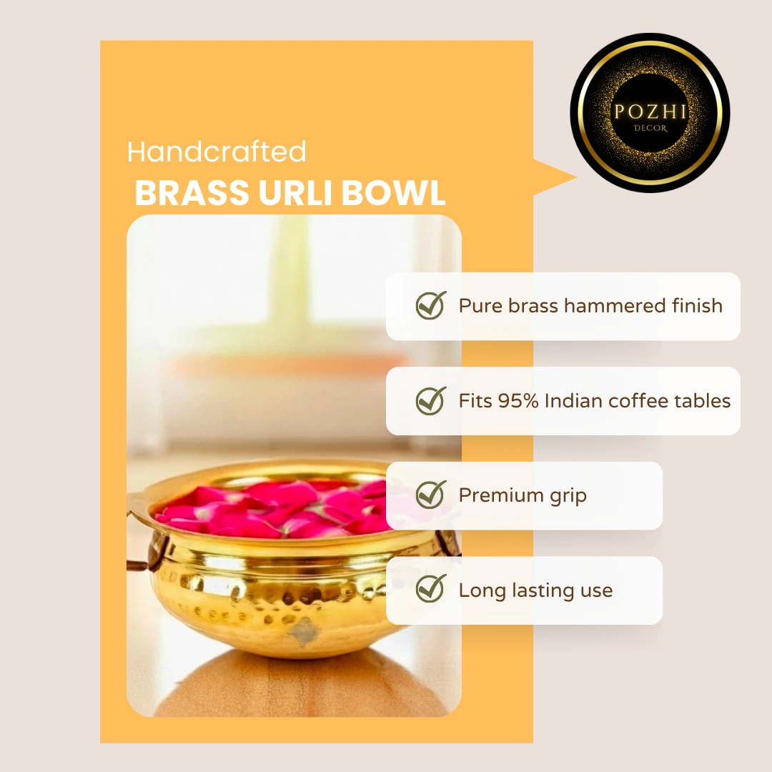 Ideal for floating flowers, water decor, pooja rituals, and festive arrangements, this brass urli enhances the beauty of your living room, entrance, or pooja area. Its natural brass finish adds warmth and elegance, making it suitable for daily decor as well as special occasions like Diwali, Navratri, housewarming ceremonies, and weddings.