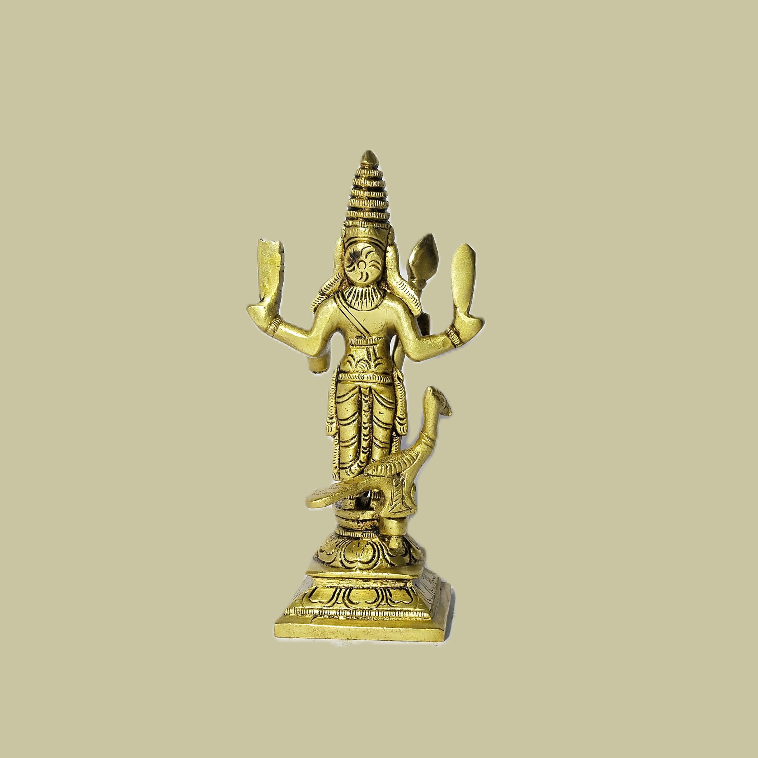 Handcrafted with precision by skilled artisans, this 6.2-inch idol highlights fine details of Murugan’s weapons and attire. The classic brass finish ensures durability and timeless beauty, making it a perfect addition to your pooja room or showcase.